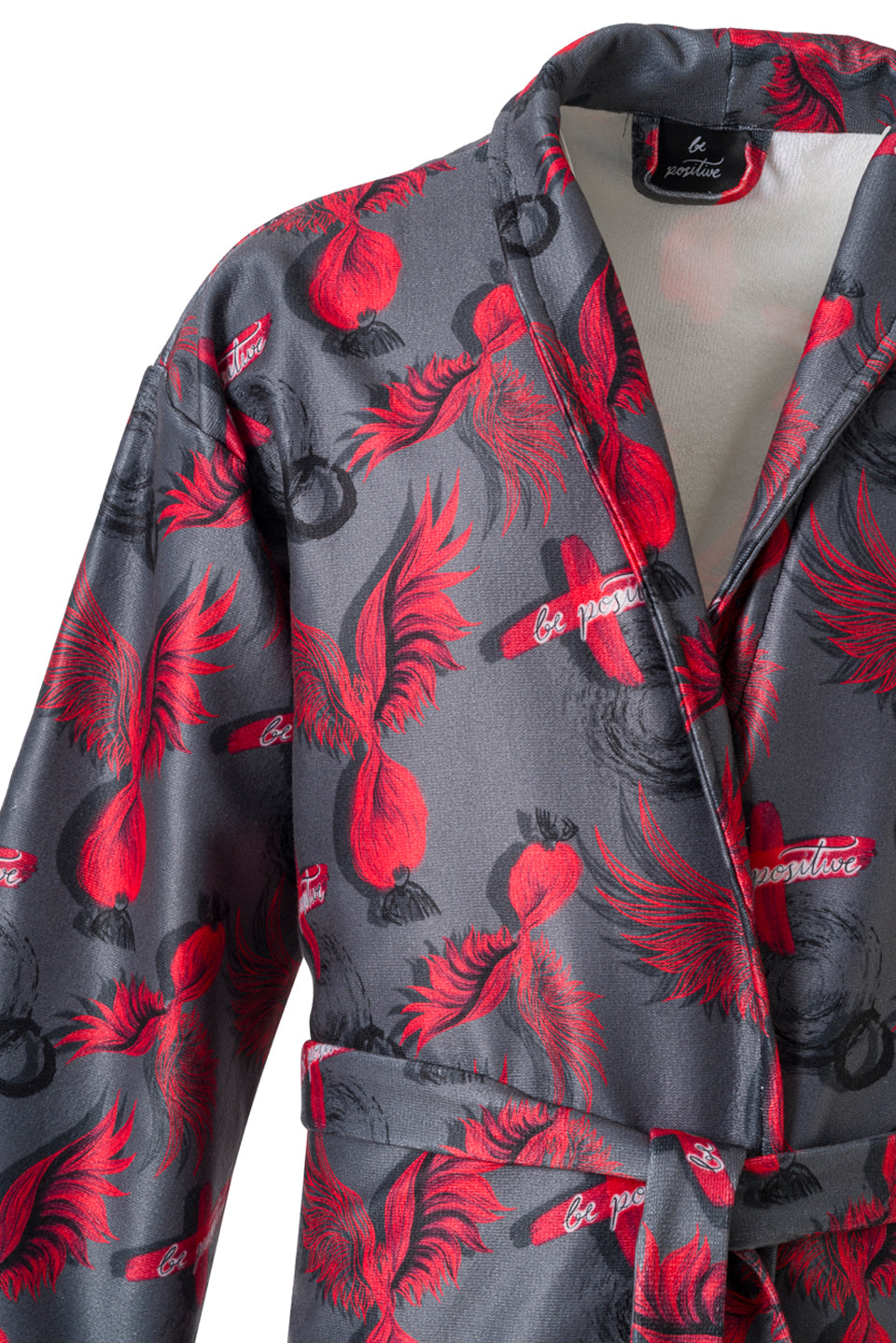 The Gray Phoenix Kimono Robe brings fiery energy with its bold red phoenix design—perfect for mornings when you want to start the day with extra power or evenings when you want to unwind in style.