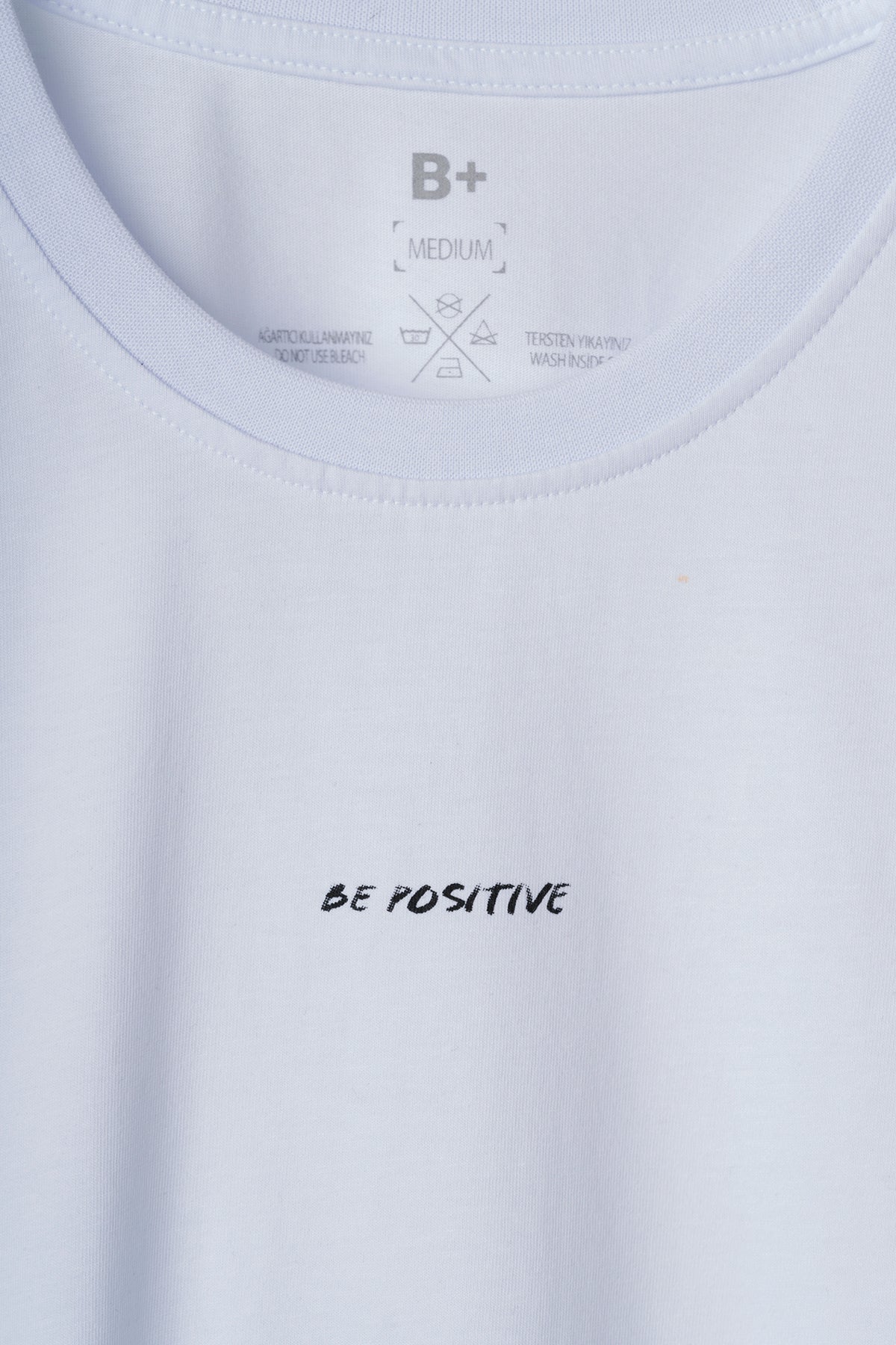 Standing out with its minimalist design, the Be Positive T-shirt creates a striking style. With its classic cut and eye-catching Be Positive logo, it delivers a clean and modern look. Available in different color options, this t-shirt appeals to every taste and is the perfect piece to complement any outfit.
