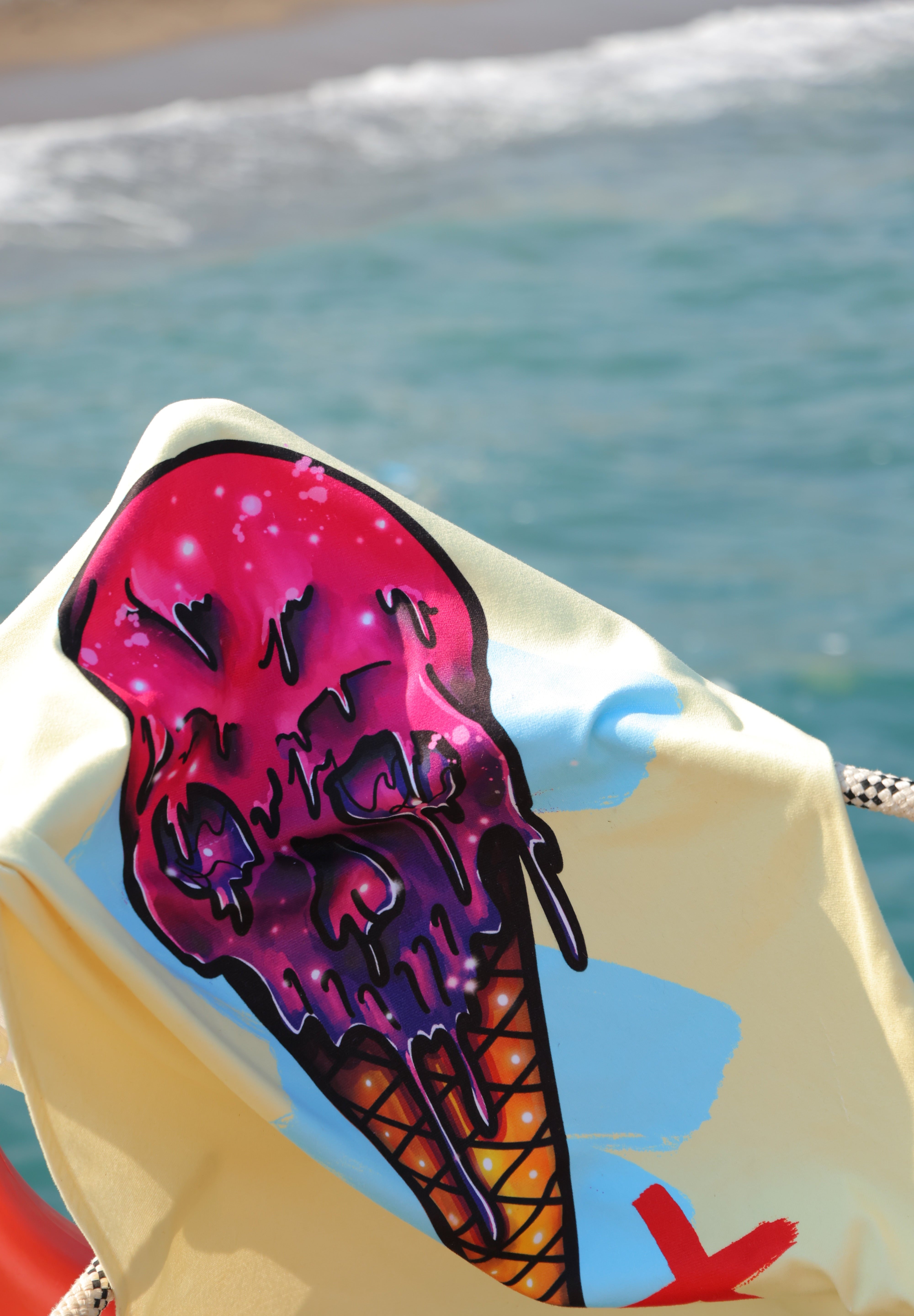 With its bold ice cream-shaped skull design, this striking beach accessory is the coolest way to show off your style. Soft, vibrant, and a little rebellious—it’s perfect for pool parties, festival vibes, or simply lounging in style. 🍦