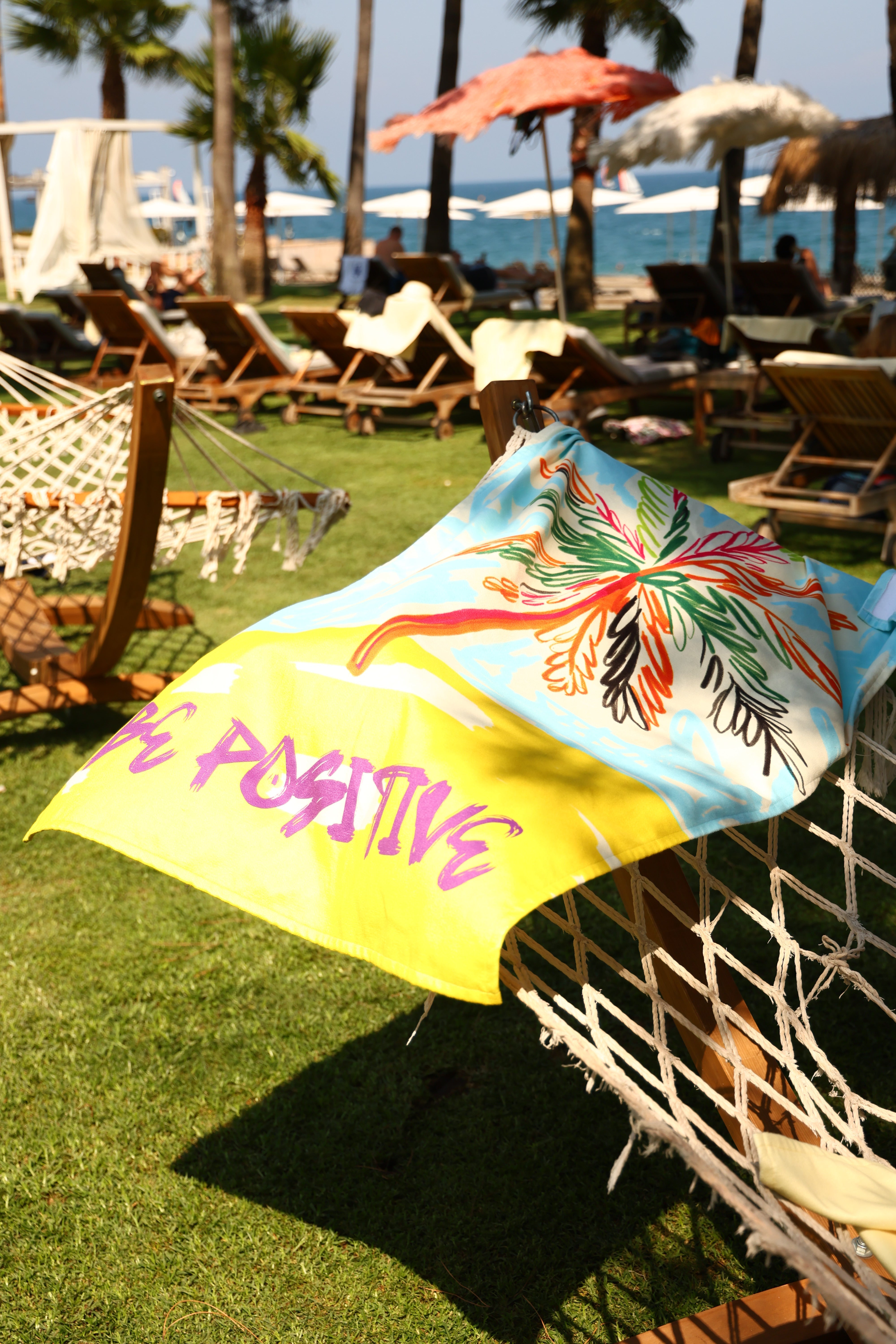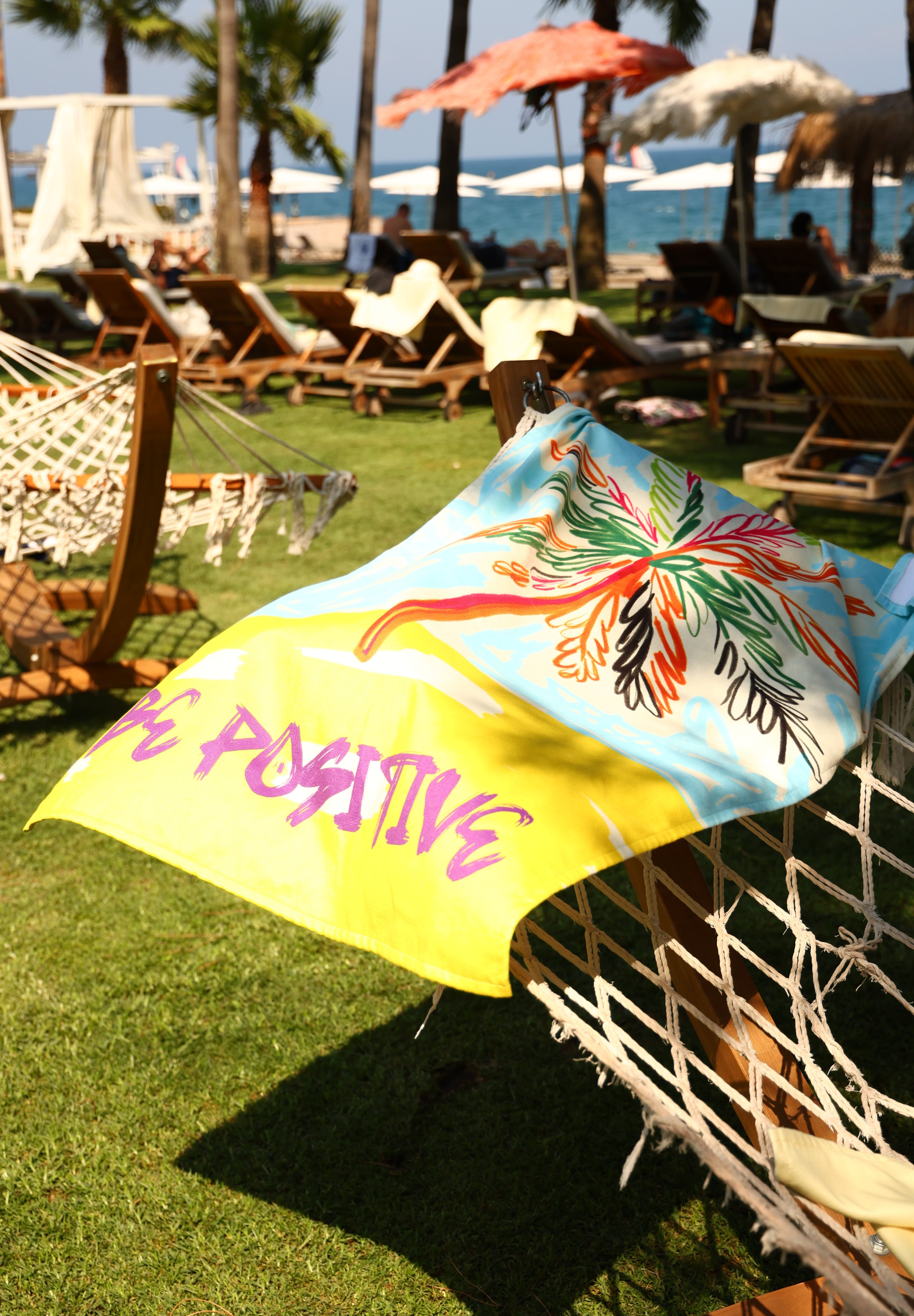 With its soft texture and vibrant palm tree design, this towel is more than just for drying off—it’s here to show off your style.